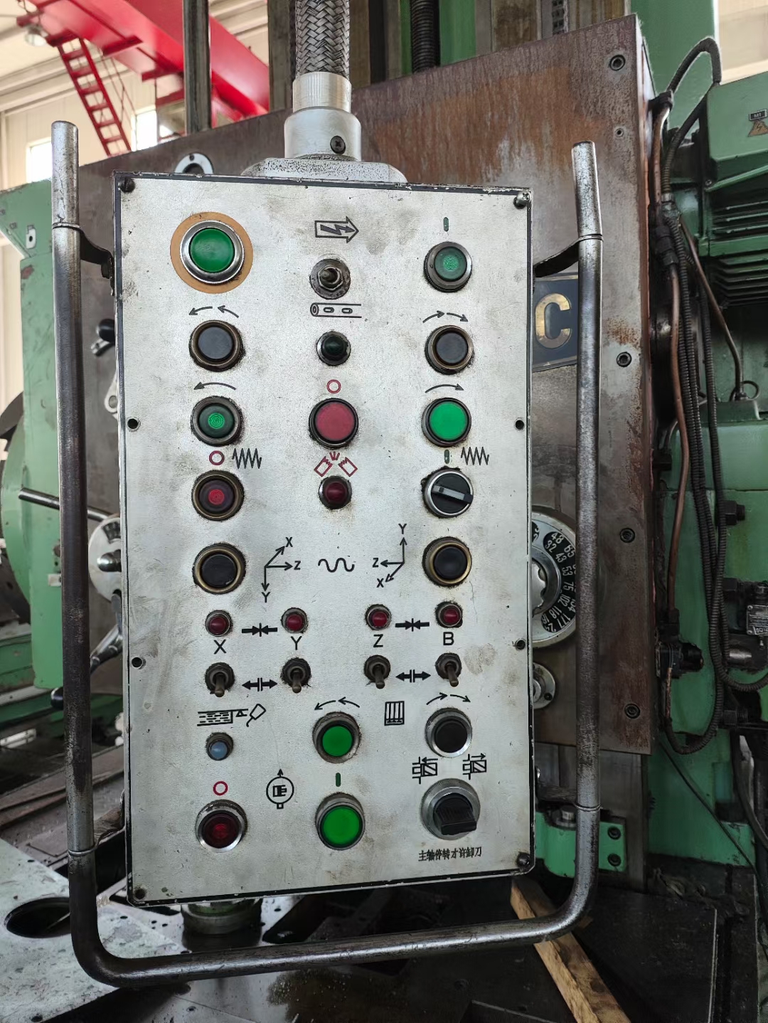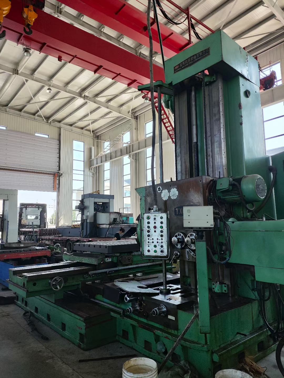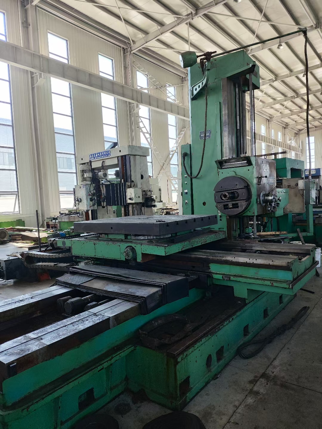 主轴:130mm,工作台:1.6米*1.4米,行程:X、Y轴—1.8米x1.6米,Z轴—2米,带拉丁。承重8-10吨。带垫铁、带后立柱、带尾座,编号:030001。