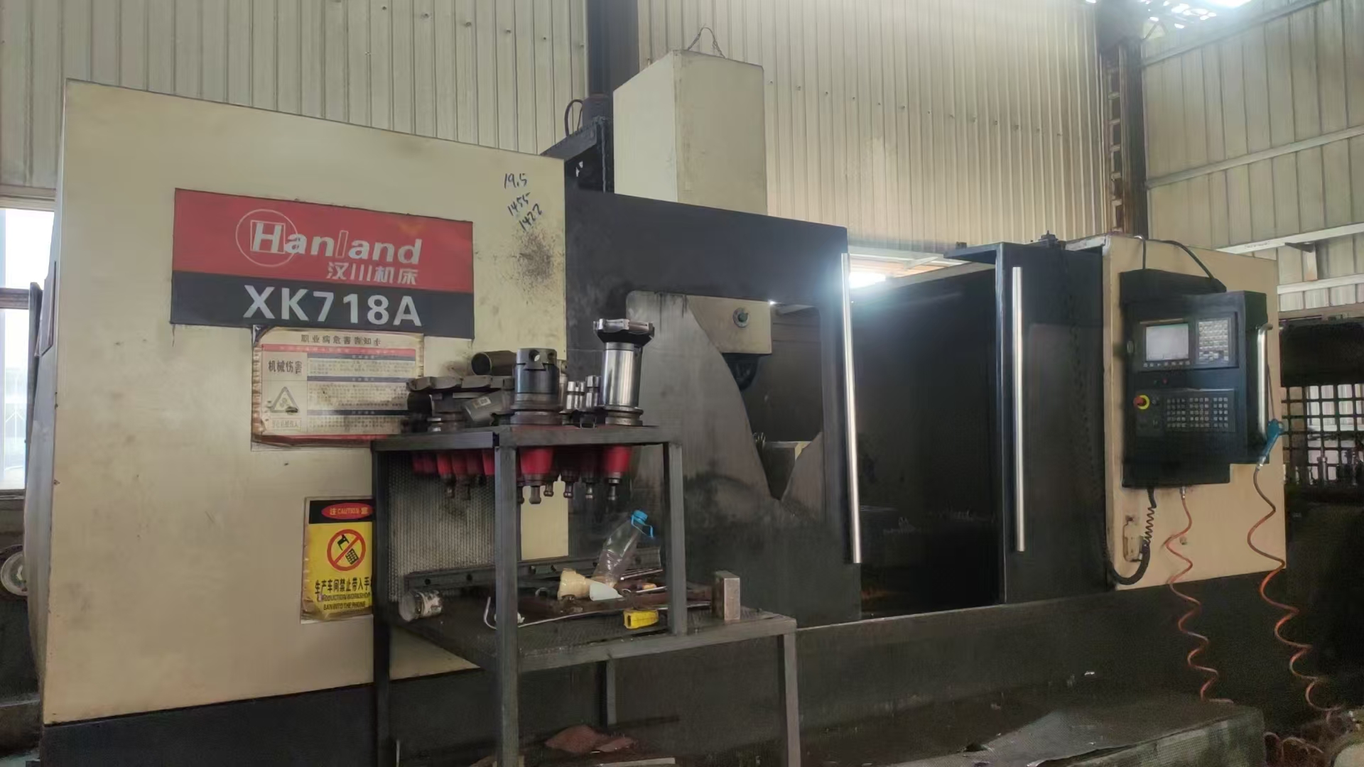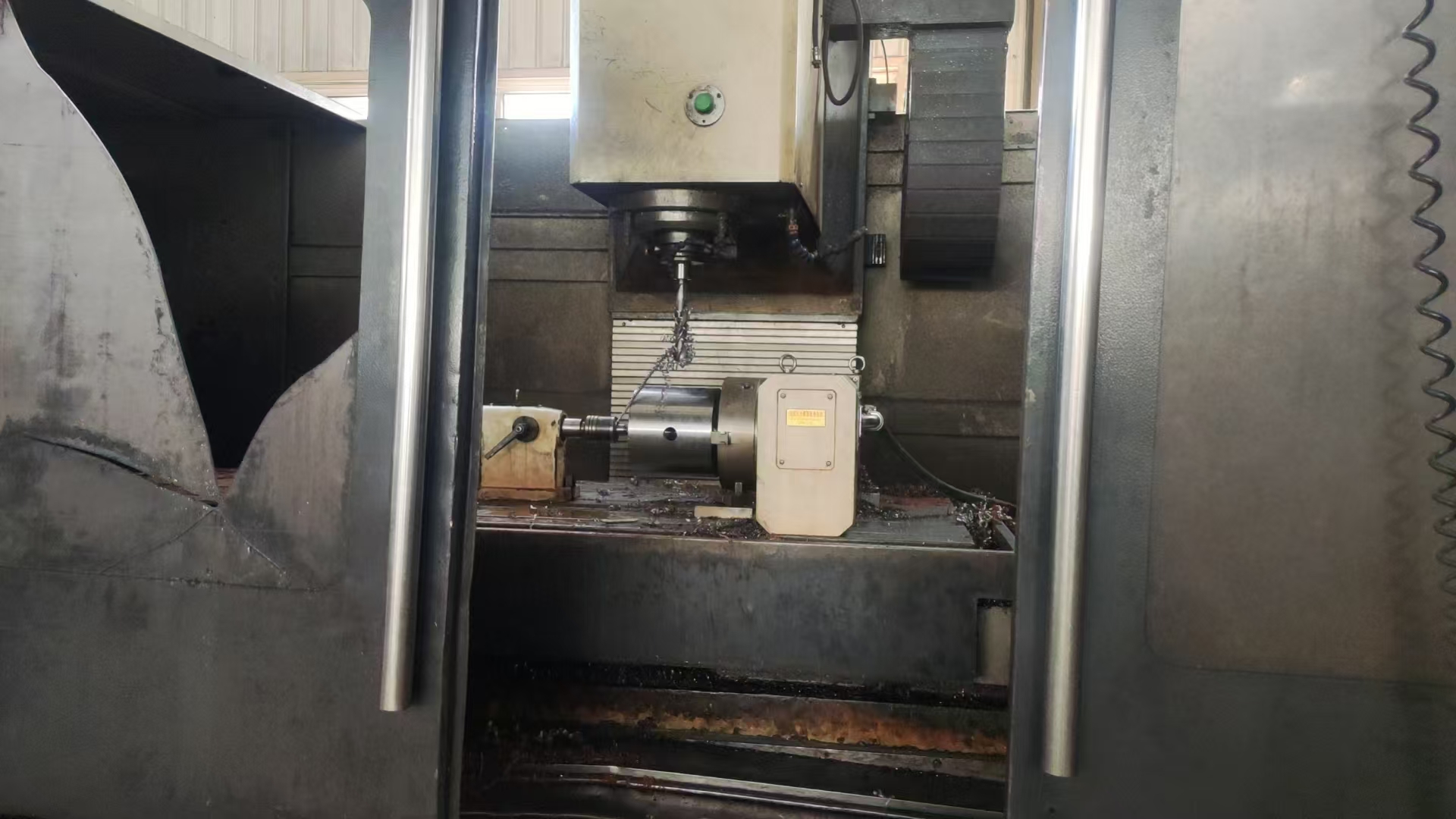 发那科MD系统,三硬轨,主轴:BT50,齿轮头,行程:1.8米X800X900,工作台:2160mm*880mm,带侧铣头,带排屑机,编号:01207095